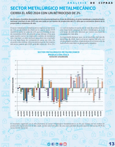 de 7,5% en diciembre de 2024 con lo cual el sector M-M una importante empresa de rubro metalúrgico, lo cual