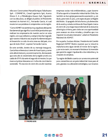 que de todo Chile”, expresó Fernando García. Regional ASIMET Biobío expresó que la industria