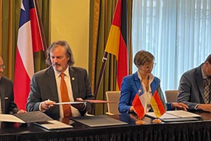 En el marco de la gira del Presidente Gabriel Boric a Alemania, este jueves el vicepresidente ejecutivo de Corfo, José Miguel Benavente, la ministra Federal de Economía y Protección del Clima de Alemania (BNWK por sus siglas en alemán), Franziska Brantner, y los representantes de SMS Group BmbH, Thomas Hansmann, y de Compañía Siderúrgica Huachipato, Jean Paul Sauré, firmaron un memorándum de entendimiento para acelerar la producción de acero verde en Chile.