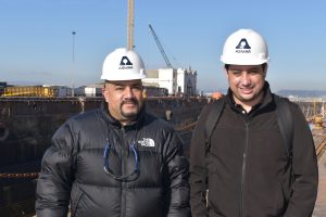 La delegación estuvo encabezada por el comandante Juan Cristóbal Méndez, quien identificó la actividad como una buena instancia para conocer a los socios y sus quehaceres como empresas. “Para nosotros es un orgullo recibirlos, para que identifiquen nuestras capacidades, como es ASMAR Talcahuano y como estamos insertos en el plan de construcción naval, fabricando este rompehielos y posteriormente los buques multipropósitos, para llegar finalmente a las fragatas. Es bueno conocer a todas las empresas que somos parte del gremio para que hagamos un intercambio comercial, de conocimientos y estrechar lazos en persona, esto une a la industria nacional en objetivos de país”, expresó el comandante.
