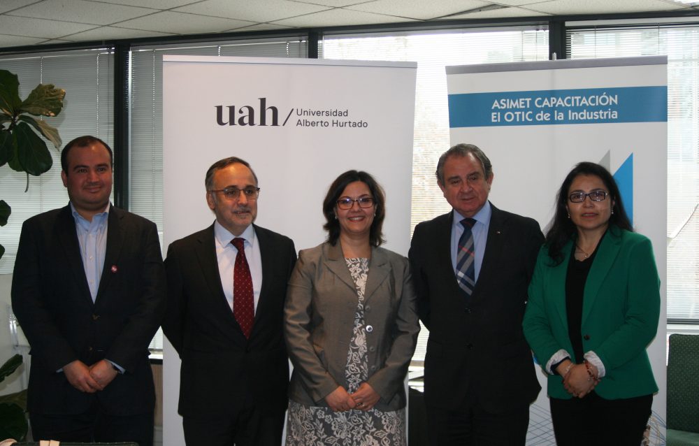 El pasado mes de agosto el Decano de la Facultad de Economía y Negocios de la UAH, Eduardo Abarzúa, junto a Mauricio Araneda, encargado de proyectos FEN, y la profesora colaboradora de la FEN, Ana Fernández, se reunieron en la Asociación de Industriales Metalúrgicos y Metalmecánicos, ASIMET con Marcelo Fúster, Gerente General de ASIMET, Elizabeth Silva, Gerenta OTIC ASIMET y María José Opazo, Consultora ASIMET, con la intención de crear alianzas entre la asociación y la FEN.