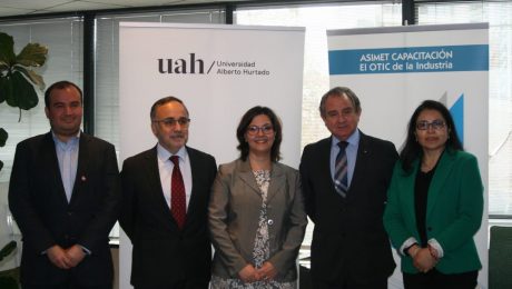 El pasado mes de agosto el Decano de la Facultad de Economía y Negocios de la UAH, Eduardo Abarzúa, junto a Mauricio Araneda, encargado de proyectos FEN, y la profesora colaboradora de la FEN, Ana Fernández, se reunieron en la Asociación de Industriales Metalúrgicos y Metalmecánicos, ASIMET con Marcelo Fúster, Gerente General de ASIMET, Elizabeth Silva, Gerenta OTIC ASIMET y María José Opazo, Consultora ASIMET, con la intención de crear alianzas entre la asociación y la FEN.