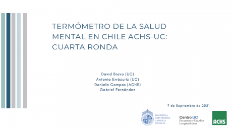 La cuarta versión del estudio de la Asociación Chilena de Seguridad (ACHS) y del Centro UC de Encuestas y Estudios Longitudinales de la Universidad Católica se realizó con gran parte del país en Fase 3 o 4 del plan Paso a Paso. Como resultado, 23,7% de las personas presentaron sospecha de problemas de salud mental, la cifra más baja desde que se realiza este estudio. Sin embargo, los niveles de síntomas asociados a la depresión se mantuvieron respecto a abril: un 18,8% exhibió síntomas moderados a severos.