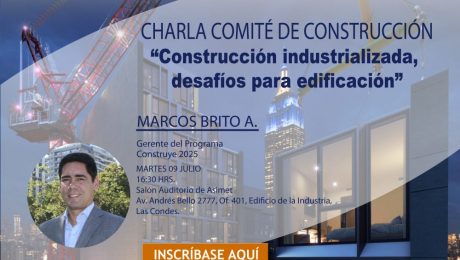 El Comité de Construcción de ASIMET, tiene el agrado de invitar a usted a participar de la charla «Construcción industrializada, desafíos para edificación», la cual estará a cargo del señor Marcos Brito Alcayaga, Gerente del Programa Construye 2025. El propósito de esta actividad es dar a conocer las últimas tendencias y tecnologías respecto a este tipo de construcción.