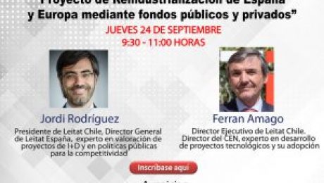 En el marco de la alianza entre Leitat y Asimet, invitamos a todos nuestros socios a participar de nuestra próxima charla online «Proyecto de Reindustrialización de España y Europa mediante fondos públicos y privados», en esta oportunidad contaremos con la participación en calidad de relatores de Jordi Rodríguez, Presidente de Leitat Chile, Director General de Leitat España, experto en valoración de proyectos de I+D y en políticas públicas para la competitividad y Ferran Amago, Director Ejecutivo de Leitat Chile, Director del CEN, experto en desarrollo de las empresas en proyectos tecnológicos y su adopción.