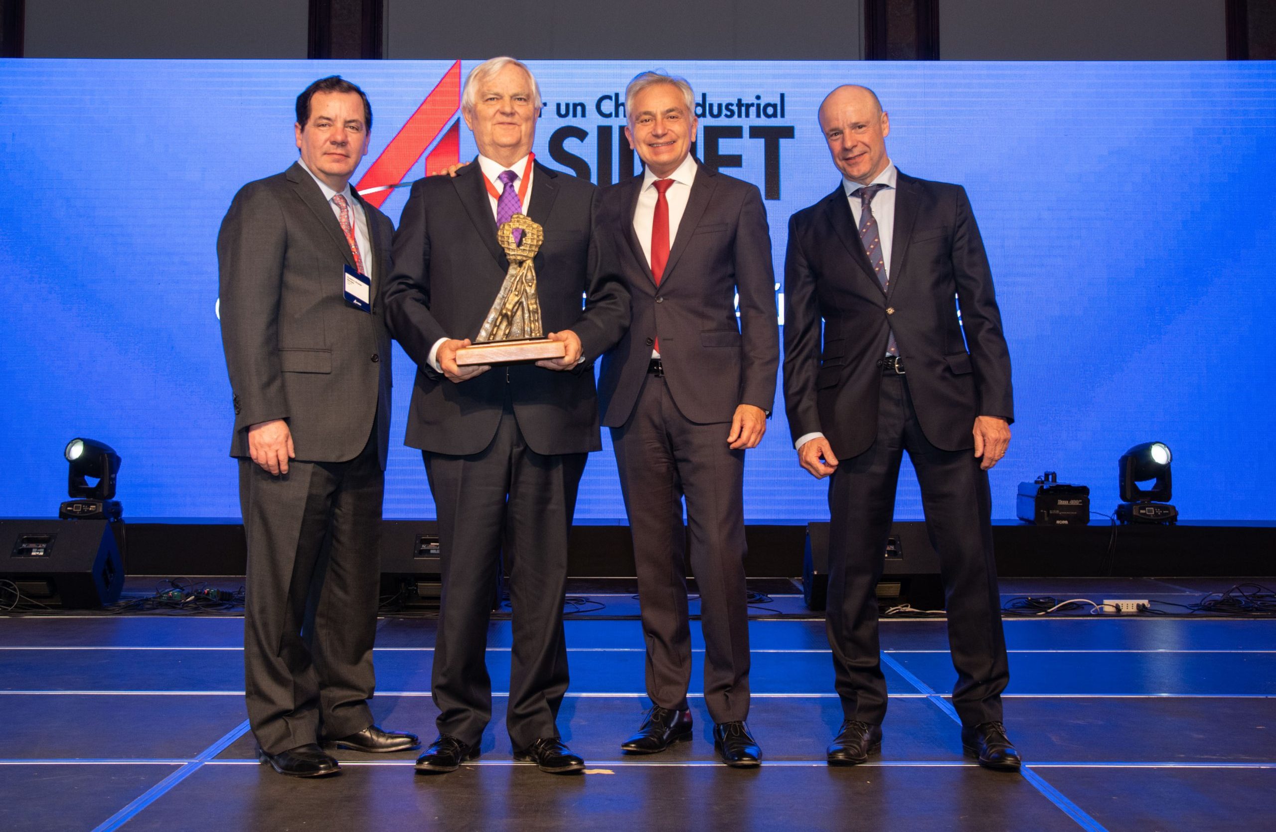 La distinción “Américo Simonetti Fiorentini”, que hace referencia al empresario del sector que haya entregado permanentemente su dedicación, esfuerzo y voluntad para el crecimiento del gremio y del sector, recayó en Carlos Quintana Hoffa de Metalúrgica Sudamericana, socio que por más de 25 años ha colaborado con el gremio en diferentes cargos y el cual actualmente se encuentra cumpliendo el rol de Vicepresidente de Finanzas en ASIMET.
