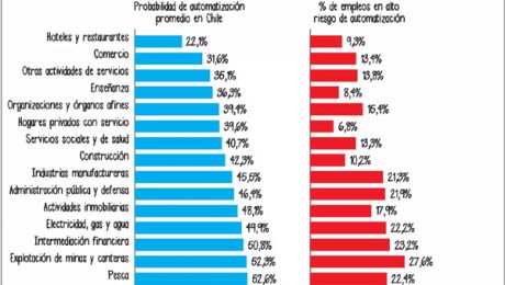 El resultado del estudio «Mercado Laboral Chileno para la Cuarta Revolución Industrial», presentado este miércoles en un seminario en la casa central de la UC (el mismo día en que se inició la huelga en Walmart sustentada por el impacto que está teniendo en el personal de cajas la incorporación de tecnología para la autoatención), reveló que existe en promedio un 42,2% de trabajos que los puede hacer un software, una máquina o un robot. Pero detalló, además, que hay un 17% de esos empleos que tienen un alto riesgo de ser reemplazados por la automatización: «Esas son más 1,3 millones de personas que pueden verse afectadas. Son de alto riesgo porque ejecutan cargos u oficios que tienen un probabilidad igual o superior a 70% de que se automaticen y que finalmente pierdan sus puestos de trabajo», dice Juan Bravo, uno de los coautores del estudio y el principal orador en el seminario.