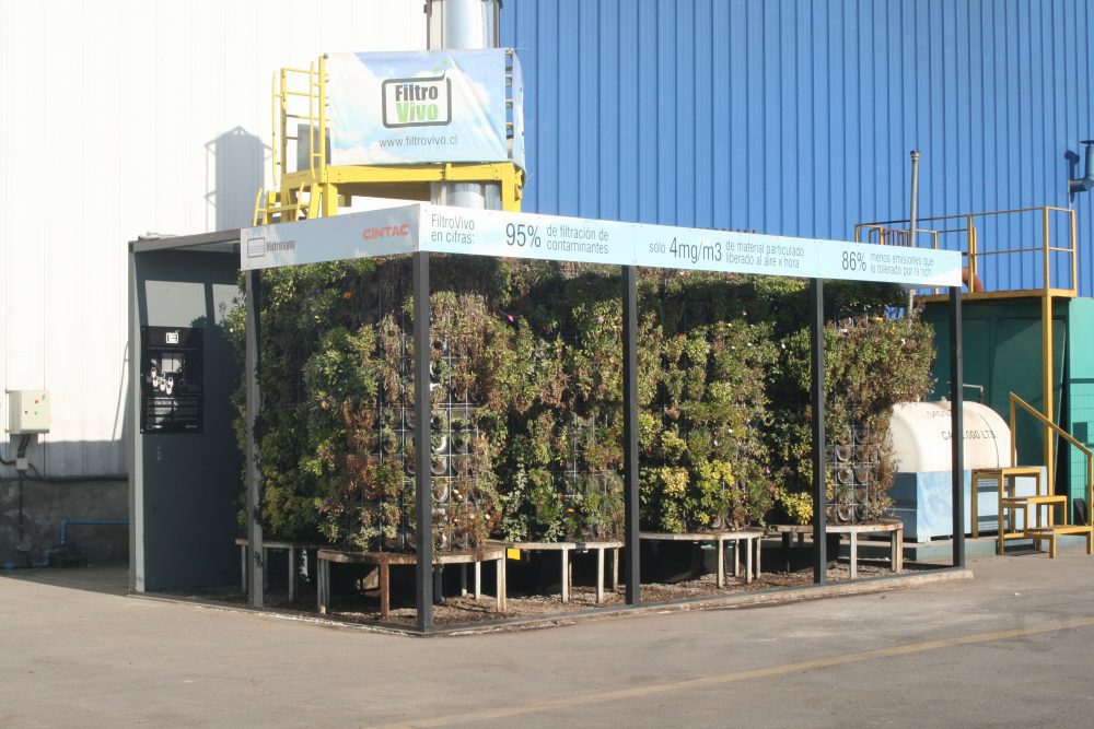 La encargada de Medio Ambiente de Cintac, Vilma Marín, señaló a los asistentes que Cintac se ha convertido en la primera empresa de Chile y del mundo en implementar el sistema FiltroVivo, el cual utiliza plantas para absorber material particulado, reduciendo en un 90% sus emisiones, “Con esta iniciativa pretendemos continuar con un desarrollo sostenible, disminuyendo las emisiones de nuestra empresa a partir de una solución innovadora y sustentable que contribuya a vivir en una mejor ciudad”, expresó.