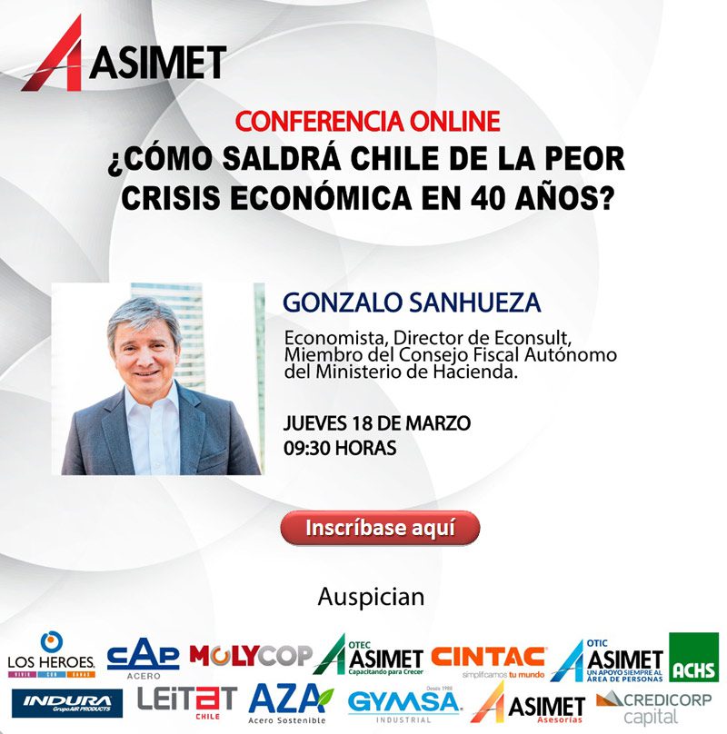 Tenemos el agrado de invitar a participar de nuestra próxima Conferencia online, oportunidad en la cual contaremos con la presencia de Gonzalo Sanhueza D., Socio Director de Econsult. quien realizará una exposición acerca de «¿Cómo saldrá Chile de la peor crisis económica en 40 años?».