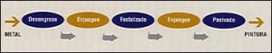 La simpleza de la aplicación industrial de este proceso, se resume según el esquema básico que muestra una secuencia de fosfatizado.