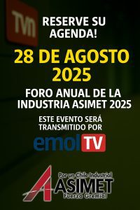 Es por ello que ASIMET realizará este 28 de agosto desde las 09:00 a 11:00 horas, vía streaming de EMOL TV y www.24horas.cl, el mayor encuentro industrial que se realiza en Chile, el Foro Anual de la Industria de Asimet 2025.