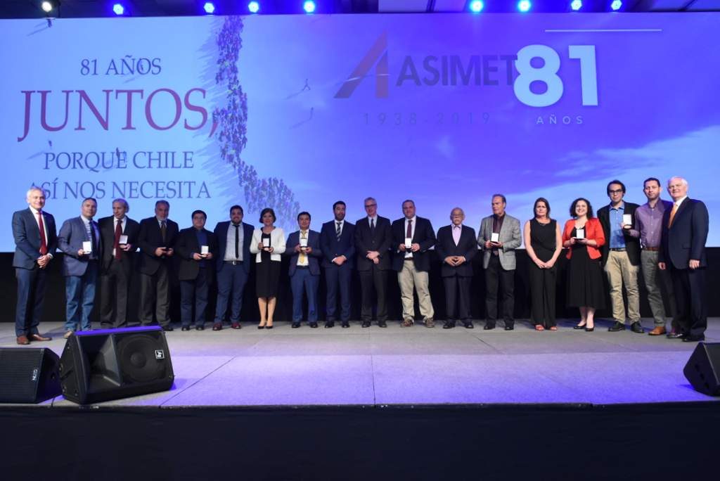 Posteriormente el Ministro Sebastián Sichel junto al Presidente de Asimet, Dante Arrigoni, entregaron la distinción “Empresa Destacada 2019”, la cual recayó en las empresas Astilleros y Maestranzas de la Armada – Asmar y Aceros Aza, quienes a través de grandes procesos de innovación y tecnología están enfrentando con éxito las nuevas condiciones del mercado y quienes además han marcado un avance en su desarrollo durante el 2019.