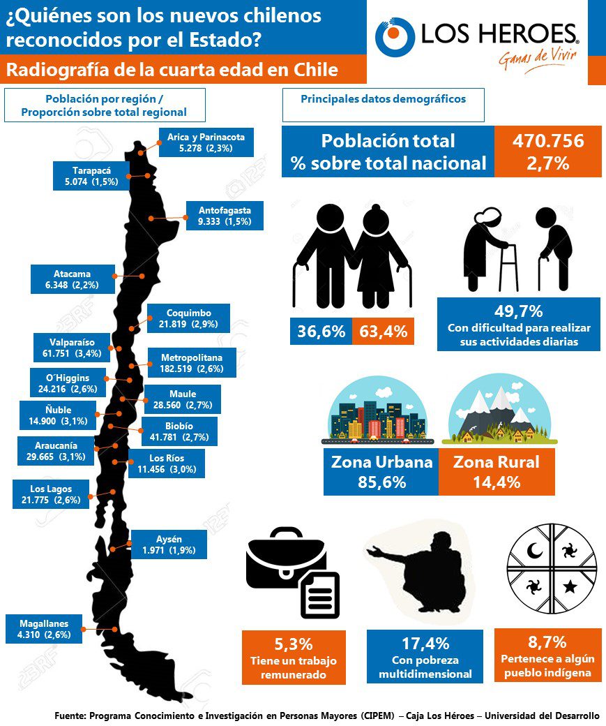 De la descripción de este nuevo segmento evidenciamos una serie de cifras e información que además de caracterizar a este grupo nos permiten relevar la importancia de aquellos más de 470.000 chilenos que conforman la cuarta edad, que como referencia equivalente a la población total de la conurbación La Serena – Coquimbo.