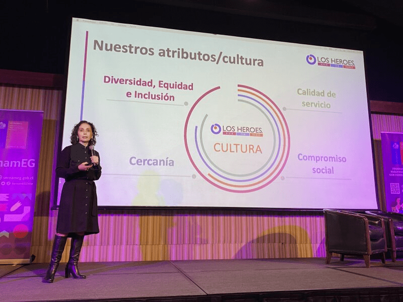 Verónica Villarroel, gerenta de Personas y Comunicaciones, relató cómo la institución se fue contagiando de esta nueva mirada en cada una de sus áreas, siempre con el respaldo de la alta dirección de Los Héroes, y la forma en que ello se ha plasmado en una cultura con enfoque de género.