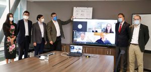 El ministro de Desarrollo Social y Familia, Sebastián Sichel; el ministro Secretario General de la Presidencia, Felipe Ward; el subsecretario de Previsión Social, Pedro Pizarro y el director nacional del Servicio Nacional del Adulto Mayor, SENAMA, Octavio Vergara, junto al presidente de Cajas de Compensación de Chile, Tomás Campero, participaron en la firma de un convenio de colaboración con dicha institución, con el fin de contribuir en la implementación de medidas de protección y apoyo frente al coronavirus para las personas mayores.