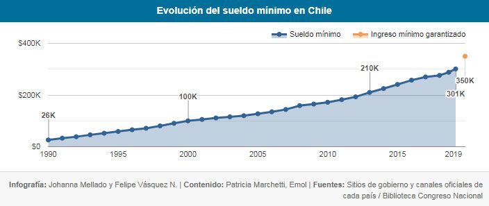 Revisa a continuación algunas de las cifras de los sueldos en el mundo y la evolución del salario mínimo en Chile desde 1990.