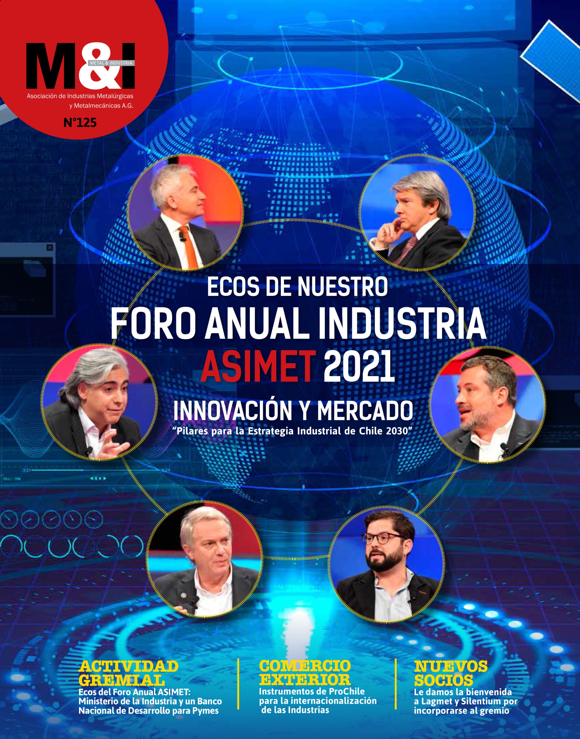 Revista Metal Industria es una publicación de circulación bimestral, con énfasis en reportajes de interés sectorial. Se distribuye en forma gratuita a empresarios y profesionales de las empresas del área industrial, minera, construcción y asociadas a ASIMET, autoridades, otras asociaciones gremiales empresariales, organismos de capacitación y educación e instituciones financieras entre otras.