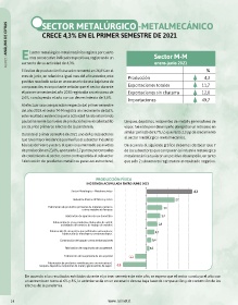 ASIMET / ANÁLISIS DE CIFRAS E l sector metalúrgico-metalmecánico registra por cuarto Sector M-M