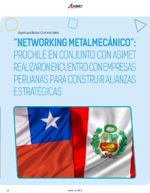 Oportunidades Comerciales “NETWORKING METALMECÁNICO”: PROCHILE EN CONJUNTO CON ASIMET REALIZARON ENCUENTRO CON EMPRESAS PERUANAS PARA CONSTRUIR ALIANZAS ESTRATÉGICAS 24 www. asimet.cl