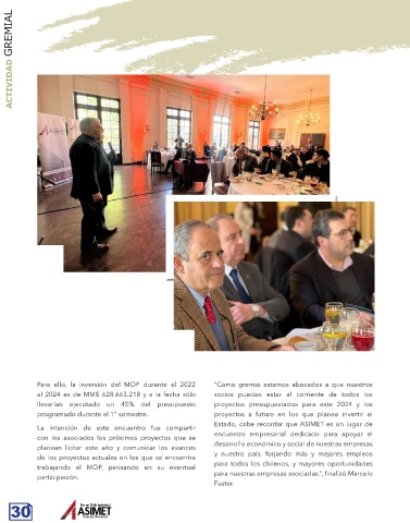 Para ello, la inversión del MOP durante el 2022 “Como gremio estamos abocados a que nuestros