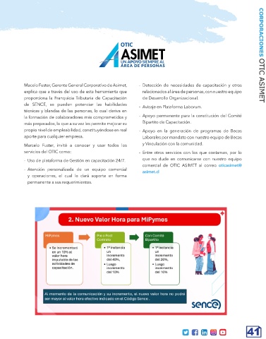 Macelo Fuster, Gerente General Corporativo de Asimet, - Detección de necesidades de capacitación y otros CORPORACIONES OTIC ASIMET