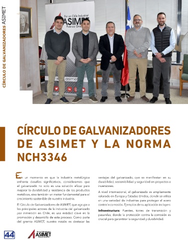 El Círculo de Galvanizadores de ASIMET, que agrupa a contra la corrosión. Ejemplos de su aplicación incluyen: