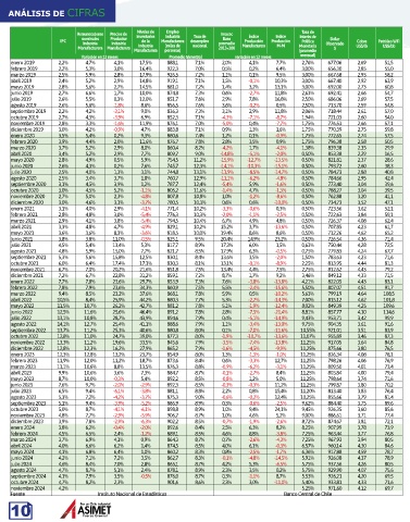 septiembre 2019 2,2% 4,2% -3,1% 9,0% 836,3 7,3% 3,1% 2,9% 11,8% 2,06% 718,44 2,61 57,0
