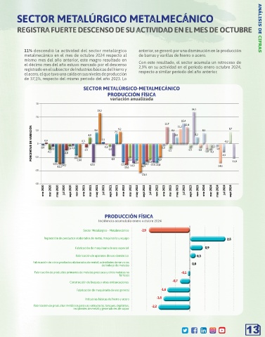 metalmecánico en el mes de octubre 2024 respecto al de barras y varillas de hierro o acero.