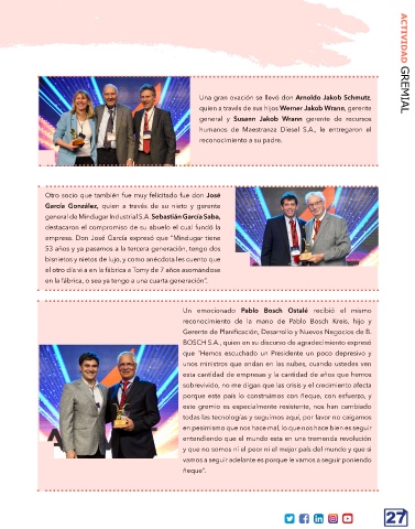 BOSCH S.A., quien en su discurso de agradecimiento expresó