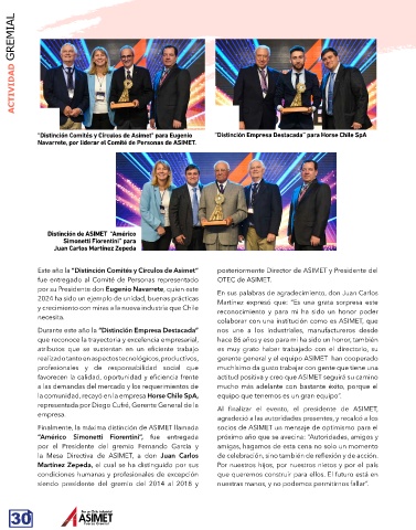 "Distinción Comités y Círculos de Asimet" para Eugenio “Distinción Empresa Destacada” para Horse Chile SpA