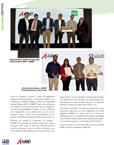 diversos reconocimientos a empresas afiliadas, uno Los Héroes. Por esta gestión y su compromiso con