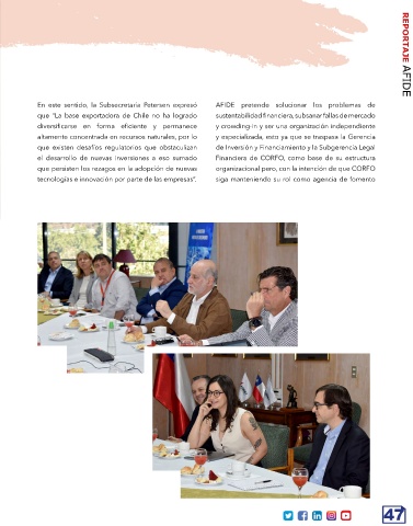 En este sentido, la Subsecretaria Petersen expresó AFIDE pretende solucionar los problemas de REPORTAJE AFIDE