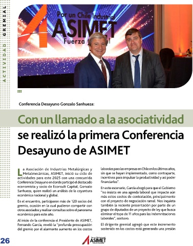 L a Asociación de Industrias Metalúrgicas y laborales para las empresas en Chile en los últimos años,