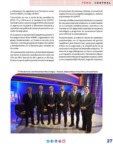 industria; inversión para generar empleos de calidad; republicano José Antonio Kast, quien puso especial