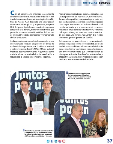 circular en la minería y revalorizar más de 14 mil los subproductos de Aceros AZA, nuestra matriz.