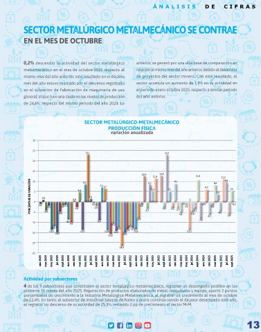 metalmecánico en el mes de octubre 2025 respecto al relación al mismo mes del año anterior, debido al desarrollo