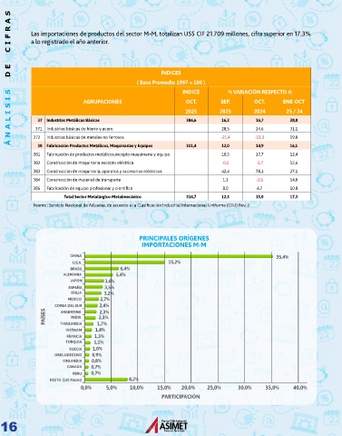 FRAS Las importaciones de productos del sector M-M, totalizan US$ CIF 21.709 millones, cifra superior en 17,3%