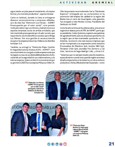 diversos reconocimientos a empresas afiliadas, Biobío tras el cierre de Huachipato, este galardón