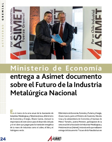de la mano de industrias como el cobre, el litio y el Metalmecánicas (Asimet), instancia en la que realizaron