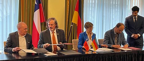 En el marco de la gira del Presidente Gabriel Boric a Alemania, este jueves el vicepresidente ejecutivo de Corfo, José Miguel Benavente, la ministra Federal de Economía y Protección del Clima de Alemania (BNWK por sus siglas en alemán), Franziska Brantner, y los representantes de SMS Group BmbH, Thomas Hansmann, y de Compañía Siderúrgica Huachipato, Jean Paul Sauré, firmaron un memorándum de entendimiento para acelerar la producción de acero verde en Chile.
